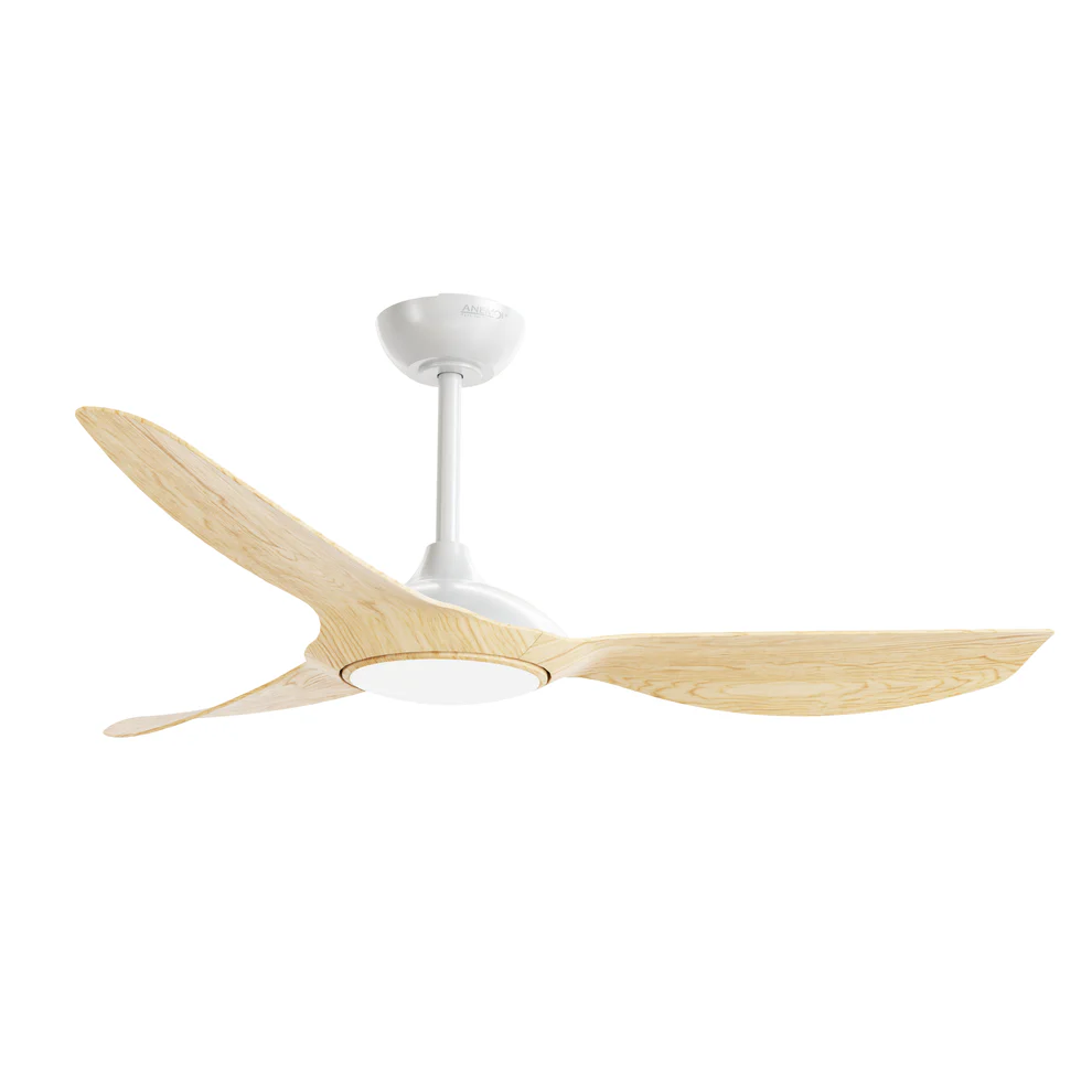 Ofrece versiones con o sin luz LED de 24 W (1.800 lm), regulable en colores: frío, blanco natural o cálido, para adaptarse a la atmósfera deseada. El control es inmediato y cómodo mediante mando a distancia; opcionalmente puede incluirse control de pared o control Wi-Fi para mayor versatilidad.